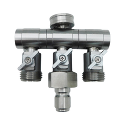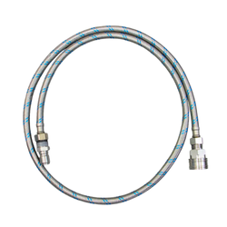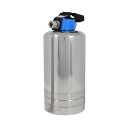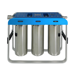 All-in-one 10-inch, 3-stage RV filtration system with water softener, stainless steel quick connect hoses, installed filters, and essential accessories.